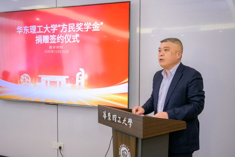 12月15日,数学学院“方民奖学金”捐赠仪式在徐汇校区八教504会议室举行。校党委常委、副校长李涛出席仪式并讲话。捐赠仪式由数学学院党委副书记王帅主持。