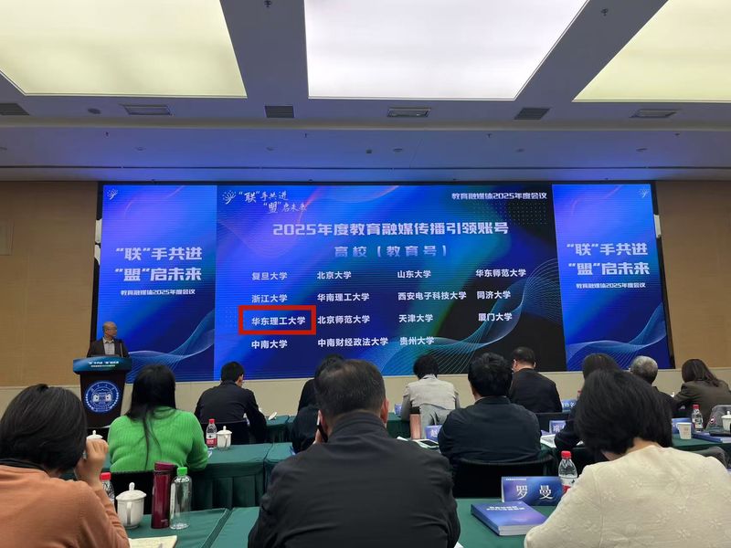 会议表彰了一批优秀融媒体平台和融媒体作品。华东理工大学(教育号)获评教育部2025年度教育融媒传播引领账号,并获最勤奋TOP1荣誉称号,党委宣传部报送的《“三维共振”构建招生宣传新范式》案例入选教育短视频2025年度案例。