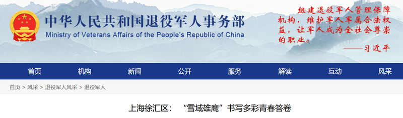 2.https://www.mva.gov.cn/fengcai/tyjrfc/tyjr/202509/t20250929_514380.html(上海徐汇区: “雪域雄鹰”书写多彩青春答卷-退役军人-中华人民共和国退役军人事务部)