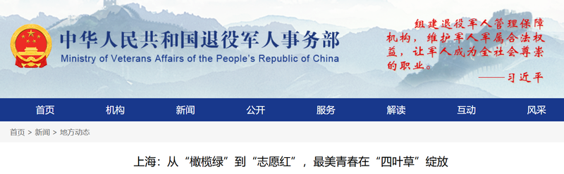 1.https://www.mva.gov.cn/xinwen/dfdt/202501/t20250116_463225.html(上海:从“橄榄绿”到“志愿红”,最美青春在“四叶草”绽放-地方动态-中华人民共和国退役军人事务部)