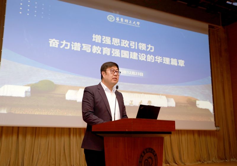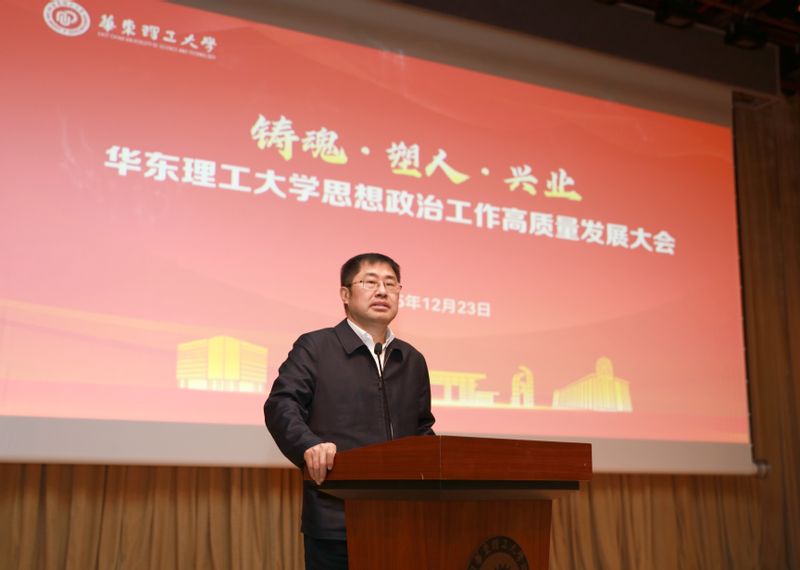 “十四五”收官在即,“十五五”即将开启。12月23日,华东理工大学思想政治工作高质量发展大会暨校党委理论学习中心组(扩大)学习会在徐汇校区召开。会议以“铸魂·塑人·兴业”为主题,深入学习习近平总书记关于思想政治工作的重要论述,贯彻落实《中国共产党思想政治工作条例》,围绕落实立德树人根本任务,总结成绩、研判时势、擘画未来,开创学校思想政治工作高质量发展新局面。校党委书记蒋传海出席会议并讲话,校长轩福贞主持会议,校党委副书记沈海涛作大会主旨报告。根据上海市教卫工作党委理论学习中心组学习列席旁听制度要求,上海戏剧学院、上海立信会计金融学院相关同志作为代表参加了学习活动。