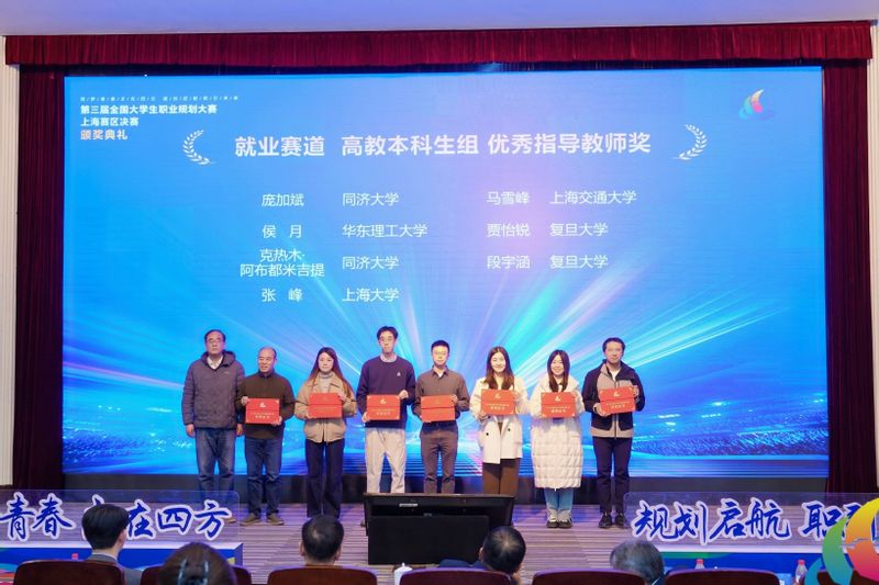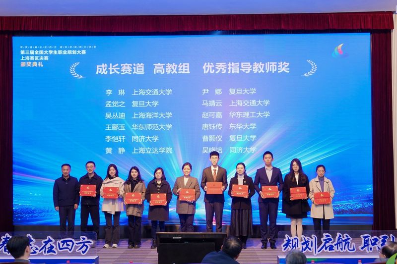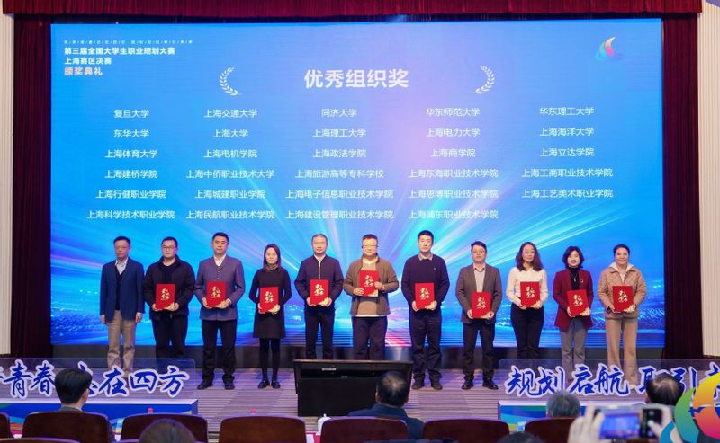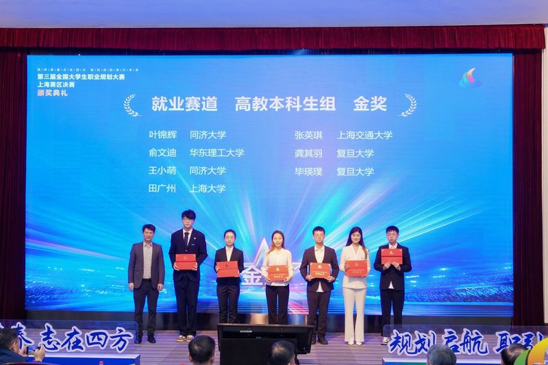 12月28日,全国大学生职业规划大赛上海赛区总决赛在同济大学落下帷幕,我校6名参赛选手进入决赛,最终斩获金奖2项、银奖2项、铜奖2项,我校获得优秀组织奖。上海市教委副主任、总督学刘玉祥,教育部学生服务与素质发展中心生涯发展教育处处长杨洪涛出席总决赛颁奖仪式。