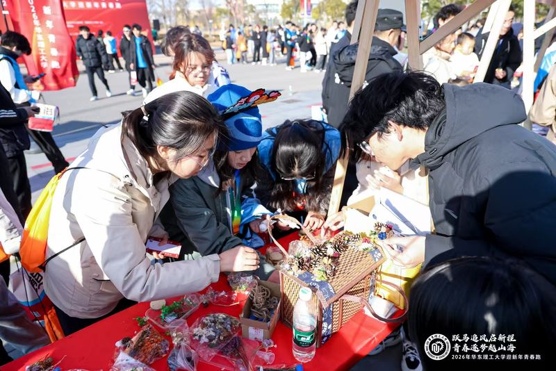 本次活动组织有序、服务细致,为参与者提供了丰富体验。赛道沿途设置专业配速员,帮助跑者科学调控节奏;终点旁的社团市集热闹非凡,师生们沉浸体验剪纸、拓印“福”字等传统文化,现场手作植物冰箱贴、烟花扭扭棒;魔术互动表演更不时引发阵阵欢笑与掌声。活动沿途设置补给站点,为参赛者提供能量补给、医疗支持及拍照留念等服务,得到了参赛者们的一致好评。
