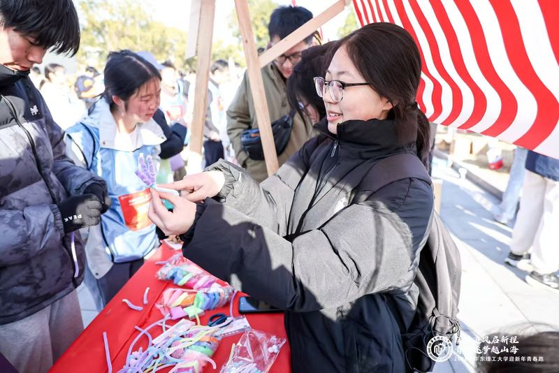 本次活动组织有序、服务细致,为参与者提供了丰富体验。赛道沿途设置专业配速员,帮助跑者科学调控节奏;终点旁的社团市集热闹非凡,师生们沉浸体验剪纸、拓印“福”字等传统文化,现场手作植物冰箱贴、烟花扭扭棒;魔术互动表演更不时引发阵阵欢笑与掌声。活动沿途设置补给站点,为参赛者提供能量补给、医疗支持及拍照留念等服务,得到了参赛者们的一致好评。