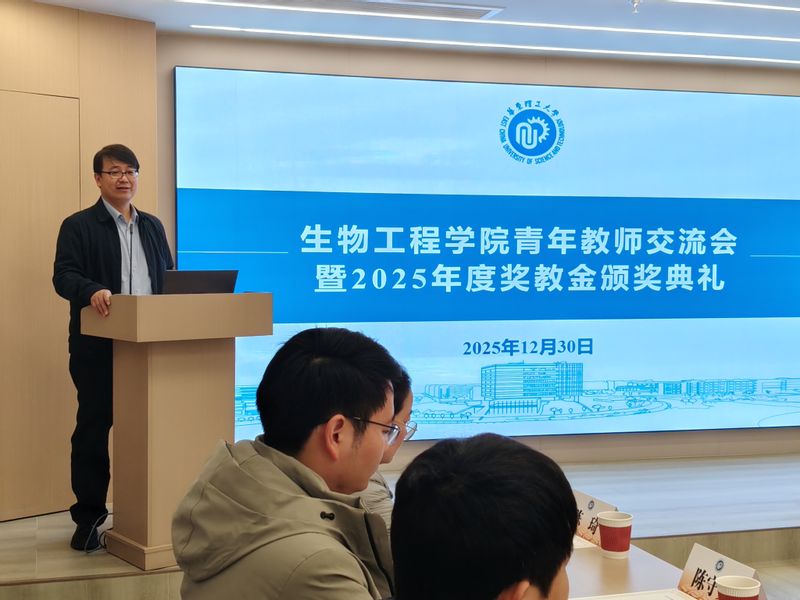 为弘扬教育家精神,表彰先进、激励全体教师,2025年12月30日上午,生物工程学院在沃美报告厅举行青年教师交流会暨2025年度奖教金颁奖典礼。学校党委教师工作部部长钱嫦萍,生物工程学院党委书记程家高、院长叶邦策等党政领导班子成员及学院教师代表共同出席。