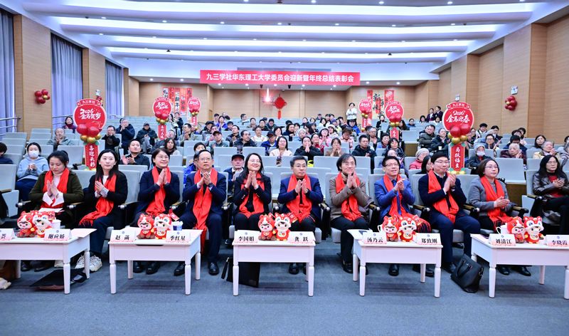 九三学社华理委员会主委郑致刚作年度工作总结。2025年,九三学社华理委员会获评社中央“全国优秀基层组织”,黄道获评全国优秀社员,俞慰刚获评全国优秀社务工作者,副主委李晓霞宣读了表彰名单。新社员代表向80周岁老社员代表张家庭献花祝寿;新社员代表林洁心、青年社员代表林森分别发表感言;原副主委俞慰刚现场执笔挥毫,用书法作品向全体社员献上新春祝福。