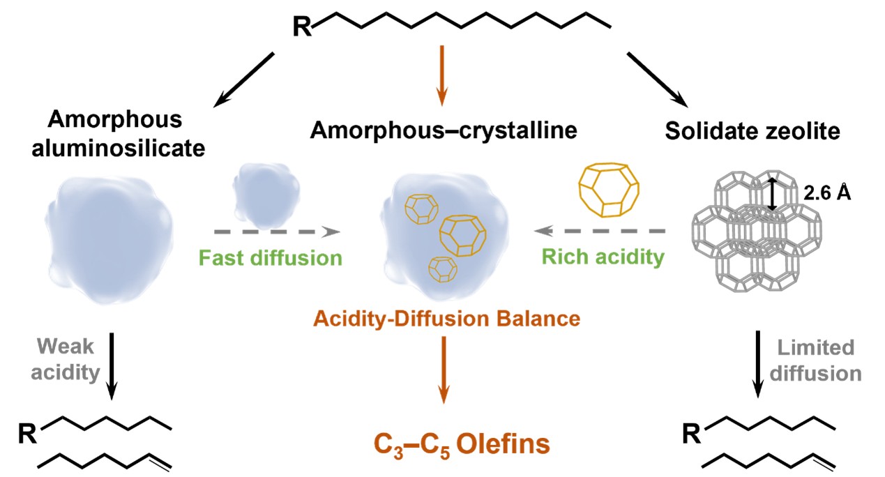 随着全球塑料消费持续增长,废弃塑料尤其是聚烯烃塑料,在环境中大量积累,不仅严重污染土地与海洋,更威胁生态系统及人类健康。作为一种高效回收技术,催化裂解可将废弃塑料转化为高价值化学品,既能减少环境污染、降低对石油的依赖,还能有效推动循环经济发展。目前,沸石基催化剂广泛应用于催化裂解,但仍存在聚合物高分子难以接近活性位点、且易因副反应积碳失活等挑战。