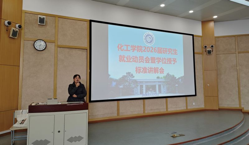为精准赋能研究生职业生涯发展,明确学位授予核心要求,保障2026届研究生顺利毕业、高质量就业,1月13日,化工学院召开2026届研究生就业动员会暨学位授予标准讲解会。党委学工部副部长、学生就业指导服务中心主任郑东、学院副院长宋震及2026届全体研究生参会,学院党委副书记孙莉主持会议。