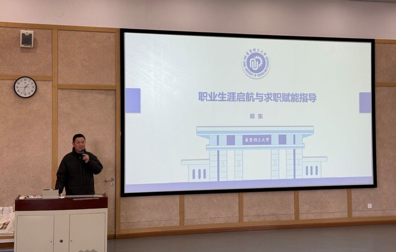 会上,郑东为同学们作“职业生涯启航与求职赋能”专题指导。他结合近年就业数据与趋势,从职业定位、就业政策等方面提供了实用建议,鼓励同学们立足学科优势,主动对接市场需求,以积极行动应对就业挑战。