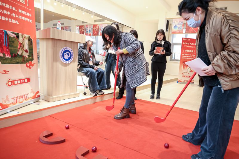 在八角亭一楼的挑战区,飞花令现场诗韵飞扬,投壶与捶丸场边喝彩连连,灯谜解语、诗牌雅戏、时辰竞巧等游戏,则考验着老师们的才智。大家在欢声笑语中比拼技艺、赚取“交子”。