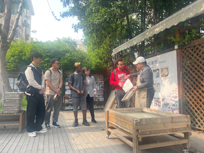 华东理工大学课程的特色在于校地合作,其课程基地联动机制将语言课程与实践活动作为有机整体进行系统设计。“当留学生在《专业汉语》课上学完造纸专业术语,下午就能在凌云社区亲手体验古法造纸。”课程相关负责人表示,课程模块衔接古法造纸非遗工坊体验,国际学生可组建大学生创新创业团队,建立非遗技艺类项目的数字资源库,结合文字、语音、视频等多媒体手段进行多语种传播,向国际伙伴阐释中国科技创新与传统智慧的融合之道,形成了“课堂认知—基地实践—海外传播”的教学闭环。