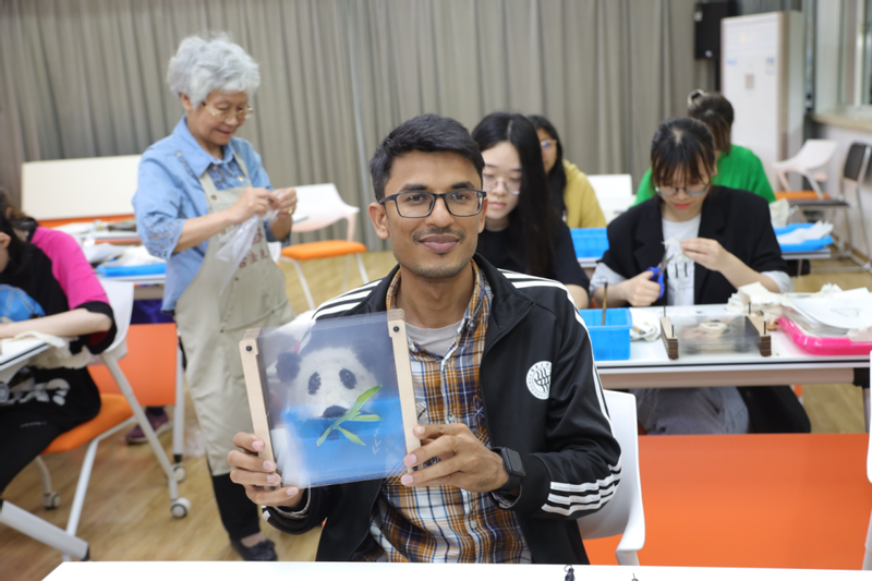 留学生体验熊猫纸艺