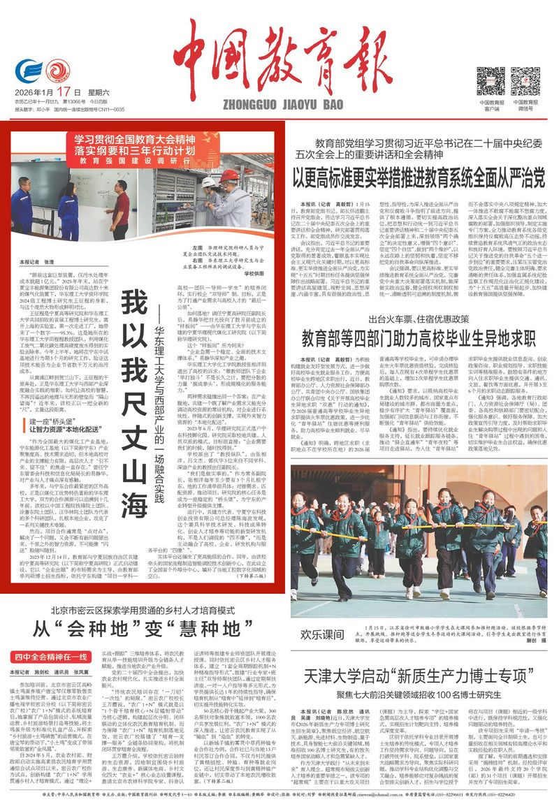 《中国教育报》1月17日 头版转二版 全文如下