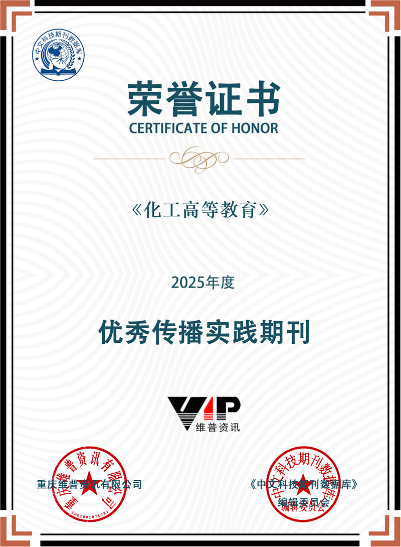 近日,《化工高等教育》在2025年度维普资讯期刊评选中获得“优秀传播实践期刊”荣誉证书。本次重庆维普资讯有限公司组织的“优秀传播实践期刊”评选不仅是对期刊学术实力与行业影响力的高度肯定,更彰显了编辑团队的专业坚守与不懈耕耘。