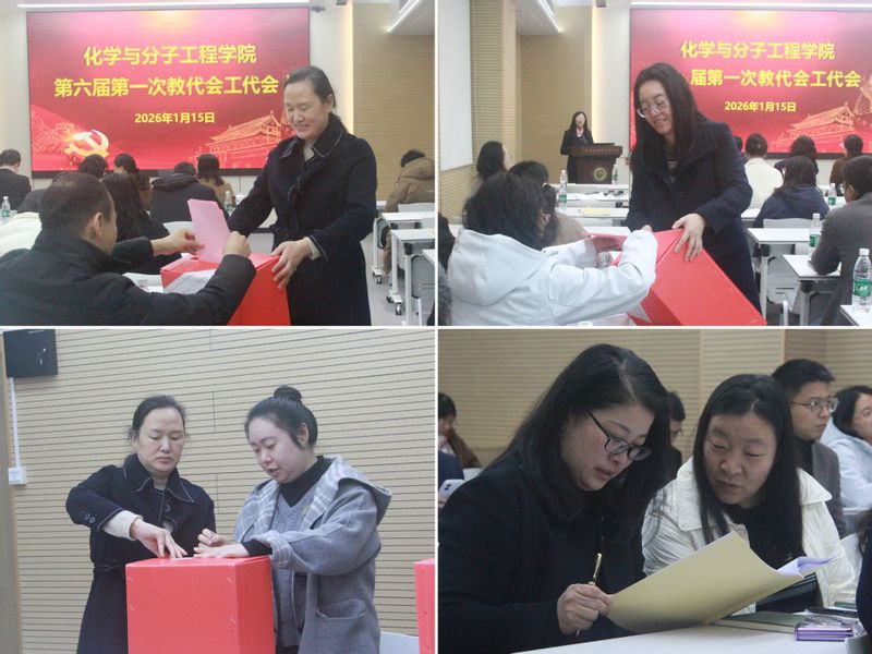 1月15日上午,化学与分子工程学院召开第六届第一次教代会、工代会暨年终总结、工会委员会换届大会。校工会副主席张攀、学院党政领导班子成员及双代会代表出席了会议。会议由学院工会主席马海燕主持。