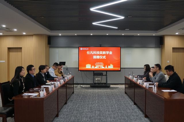 1月20日,材料学院“仕凡科技奖教学金”捐赠仪式在徐汇校区先进材料大楼522会议室举行。仕凡科技(浙江)有限公司(以下简称“仕凡科技”)总经理、我校2005届校友方亮,董事廖芳,人事行政主管王玮,2025届校友、产品经理王言帅,我校材料学院党委书记袁媛、党委副书记胡宝林,副院长顾金楼、牛德超等出席仪式。牛德超主持并介绍了“仕凡科技奖教学金”的设立背景,此次捐赠建立在双方前期良好的合作基础上,是校友支持学生培养、教师队伍建设的深厚情怀。