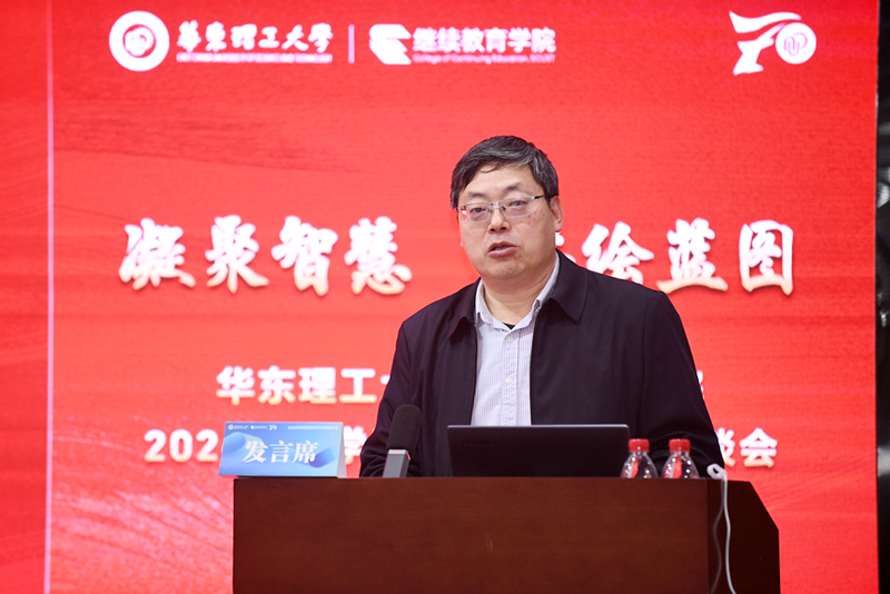 继续教育学院院长陈锋作了学院非学历教育事业发展的主旨报告,系统分析了当前非学历教育面临的机遇与挑战,明确提出要充分发挥华东理工大学作为行业特色鲜明的研究型大学的优势,在国家构建泛在可及的终身教育体系中扮演引领角色。他指出:“未来,我们将致力于打破传统路径依赖,在挑战中破局,在机遇中进阶。希望以此次座谈会为契机,与各位专家携手,共同构建一个开放、协同、创新的终身教育新生态,以实际行动赋能中国式现代化进程。”
