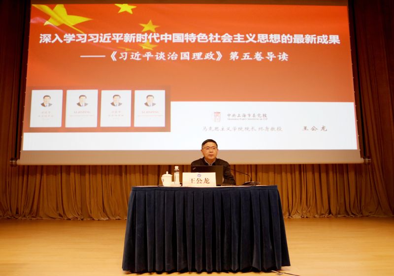 图片说明:中共上海市委党校马克思主义学院院长王公龙教授作辅导报告