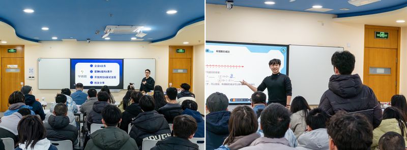 为精准对接教育领域人才需求,推动数学学科与素养教育深度融合,师生一行抵达学而思素养柳州路校区。上海学而思校招渠道经理李龙斌带领师生实地考察校区教学环境与功能布局,全面展现企业“科技赋能教育”的发展理念与核心优势。座谈会上,学而思团队系统介绍了企业发展历程、业务布局与核心竞争力,并特别邀请校区骨干教师开展示范课展示,直观呈现数学素养课程的教学方法、课堂组织技巧与学科应用逻辑。