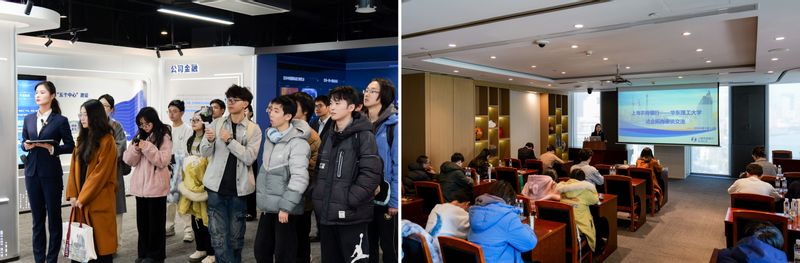为对接金融行业数智化转型需求,搭建数学学科与金融领域的人才输送桥梁,师生一行走进上海农商银行总行参访交流。在工作人员的引导下,师生参观了总行展厅,系统了解上海农商银行的发展历程、业务布局、行业影响力及数字化转型成果,深刻认识到数学在金融风控、产品研发等核心业务中的关键作用。