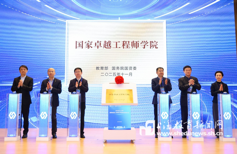 上海市教育委员会副主任栾宗涛,中国石油和化学工业联合会副会长李彬,徐汇区副区长陈勇,奉贤区政协副主席、科学技术委员会主任卓雅,以及华东理工大学党委书记蒋传海、校长轩福贞共同为国家卓越工程师学院揭牌。