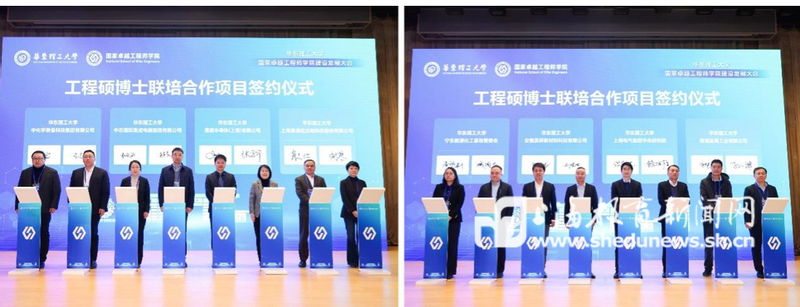 在工程硕博士联培合作项目签约仪式上,校长助理、研究生院院长杜文莉等8位学校教师,分别与中芯国际集成电路制造有限公司、晟碟半导体(上海)有限公司、中化学装备科技集团有限公司、上海奥浦迈生物科技股份有限公司、宁东能源化工基地管委会、安徽昊研新材料科技有限公司、青海盐湖工业有限公司、上海电气集团中央研究院等单位签约联培合作项目。各方将围绕绿色化工、高端装备、集成电路、生物医药等关键领域,共同推进人才培养、技术研发与成果转化,构建校企协同、产教联动的卓越工程师培养新生态。