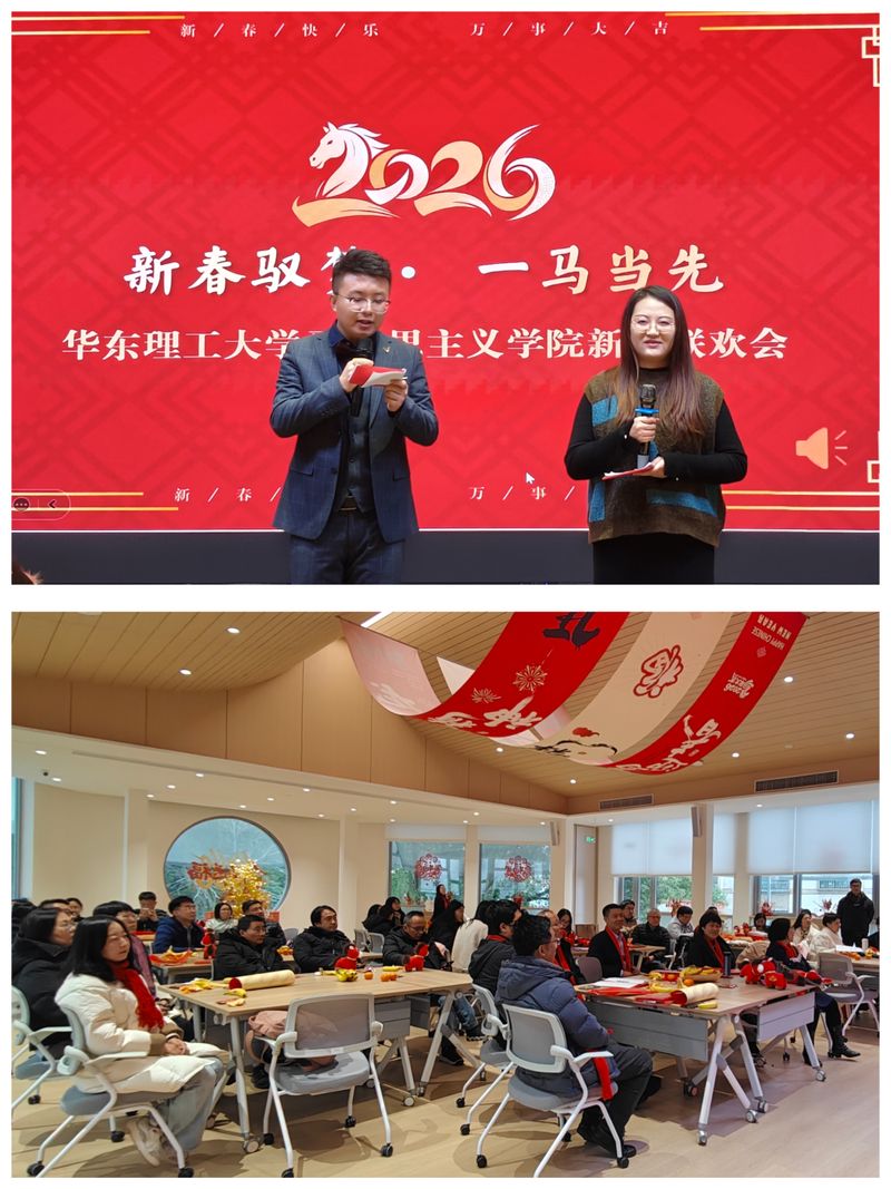 当天下午,马克思主义学院举办了“跃马扬鞭启新程 铸魂育人谱华章”新春联欢会。学院教师们欢聚一堂,共迎新春、共话未来。老师们、华二代们各展所长,歌曲、三句半、诗朗诵、古筝表演等节目精彩纷呈,模仿秀、猜歌名、猜成语等游戏设计巧妙,整个会场洋溢着欢乐喜庆的氛围。
