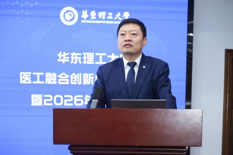 1月31日上午,华东理工大学医工融合创新中心启动仪式暨2026年度学术会议在徐汇校区逸夫楼演讲厅举行。上海申康医院发展中心副主任王育,长三角国家技术创新中心副主任、上海长三角技术创新研究院党委副书记李积宗,复旦大学附属华东医院院长保志军,上海市闵行区中心医院党委副书记、执行院长范隆华,中国福利会国际和平妇幼保健院副院长王彦林,复旦大学附属眼耳鼻喉科医院副院长莫晓芬等领导和专家学者应邀出席。校党委副书记沈海涛,副校长李涛,副校长、中国科学院院士朱为宏等校领导,以及学校有关职能部处领导、医工融合创新中心全体班子成员等共同参会。副校长、医工融合创新中心主任赵黎明作中心工作报告。大会由沈海涛和药学院院长、医工融合创新中心常务副主任赵玉政分阶段主持。