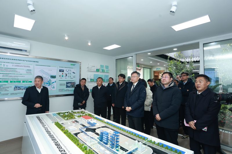 会前,与会领导实地参观了绿色甲醇中试项目的建设与运行情况。陈德重点介绍了项目总体进展及“BESTm”核心技术的创新点与阶段性突破,展示了系统稳定运行的操作画面与运行数据,关键指标均已达到预期目标,迈出了从实验室走向工程化验证的关键一步,为后续规模化推广与产业化落地奠定了坚实基础。