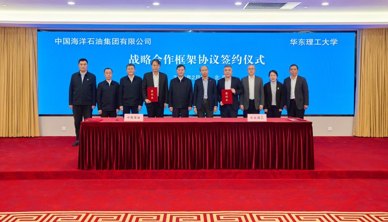 2月2日,华东理工大学与中国海洋石油集团有限公司(以下简称“中国海油”)战略合作签约仪式在北京举行。中国海油董事长张传江、总经理黄永章会见校长轩福贞一行。中国海油总经理助理、规划计划部总经理朱磊,科技与数智化部总经理卢涛,校党委常委、副校长李涛,党委常委、宣传部部长柴华,校长助理、研究生院院长杜文莉,含碳废弃物资源化零碳利用教育部工程研究中心主任王辅臣出席签约仪式。