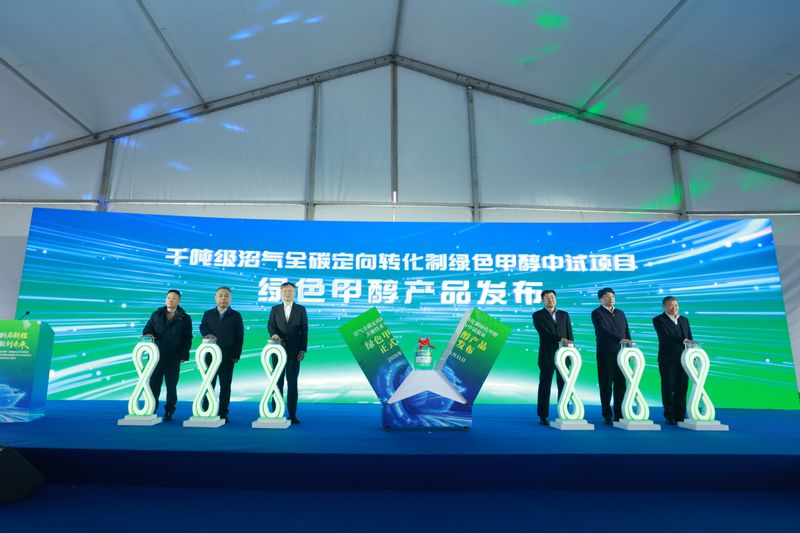 会上,上海市相关委办局、浦东新区、临港新片区、全球甲醇行业协会、华东理工大学与上海复洁科技的相关领导共同发布了ISCC双认证的国际认证报告和产品检测报告;项目组成员单位代表共同见证了千吨级沼气全碳定向转化制绿色甲醇中试验证正式启动。