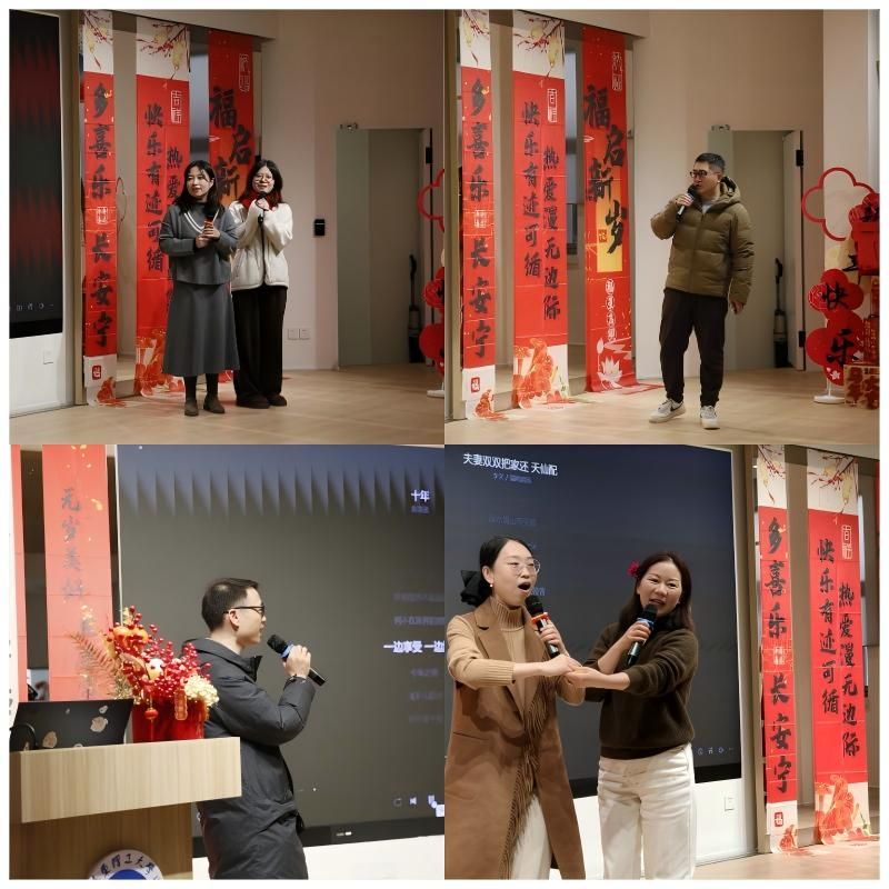 会上,新近入职教职员工登台进行自我介绍,表达了投身学院教学、科研、育人等工作的信心并以“歌曲串烧”的形式向全院教职工送上新春祝福。教职工们通过“你比划我猜”“气球跑”“兔子舞”等形式多样的活动进一步加强交流、凝聚情谊。