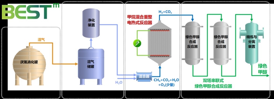 沼气全碳定向转化制绿色甲醇颠覆性技术路线