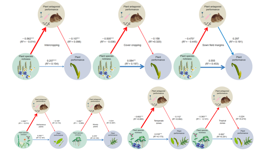 研究团队还利用结构方程模型,验证了“植物多样性→抑制害虫、病害和杂草→整体生产力提升”这一核心因果链条,证明了“生物防治”不是玄学,而是可量化、可复制的科学方案。