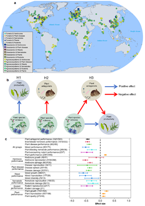 该研究分析了来自全球609项实验、5712组数据,覆盖农田、草原、森林三大生态系统,横跨热带与温带,在全球尺度上证实:植物多样性种植不仅能直接促进植物增产,更能通过抑制植物病虫害间接提升作物产量,为发展高效生态农林业与草业提供了兼具科学创新性与实践可行性的全新路径。