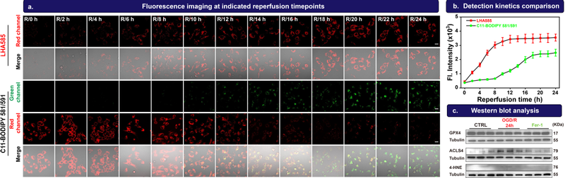 图2.:LHA585和金标准探针对OGD/R细胞模型中铁死亡的检测能力比较。