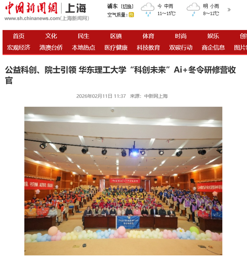 【中国新闻网】公益科创、院士引领 华东理工大学“科创未来”Ai+冬令研修营收官