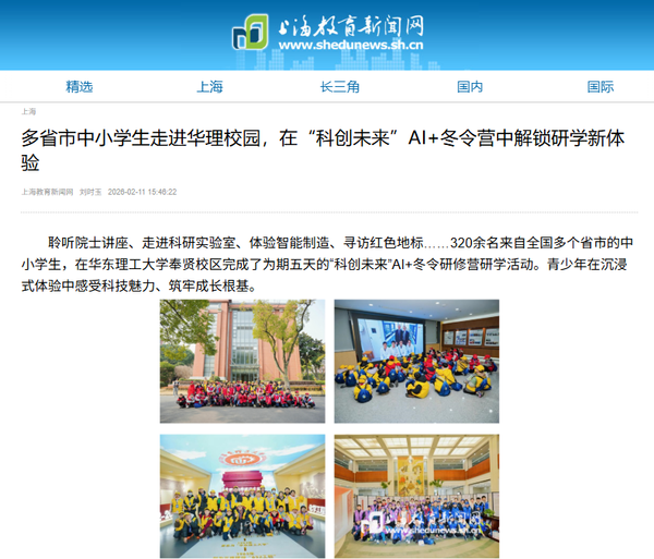 【上海教育新闻网】多省市中小学生走进华理校园,在“科创未来”AI+冬令营中解锁研学新体验