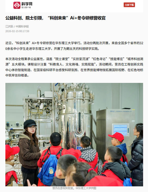 【上海科技报】公益科创、院士引领,华东理工大学举办“科创未来”Ai+冬令研修营