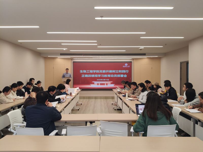 3月15日,生物工程学院党委召开树立和践行正确政绩观学习教育动员部署会。学院党委书记程家高主持会议,学院党政领导班子成员、师生党支部书记参加会议。