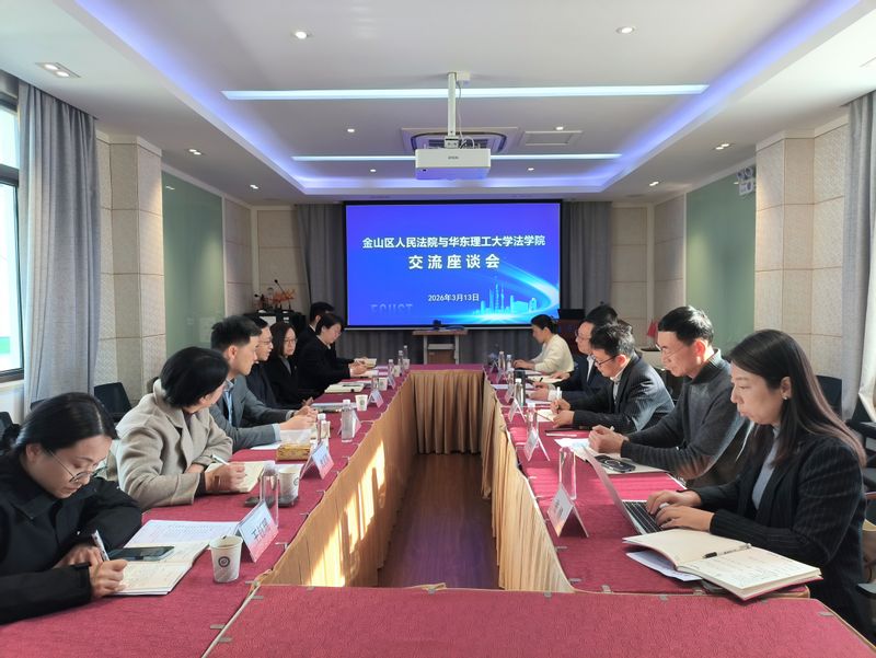 3月13日下午,金山区人民法院党组书记、院长余剑,党组成员、副院长王燕华,党组成员、政治部主任熊艳蓓等一行到访法学院,开展院校合作交流座谈。法学院党委书记王惠文,副院长周登谅、孙晓东等参加座谈交流。座谈交流会由法学院院长彭德雷主持。