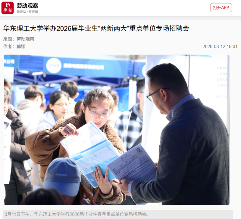【劳动观察】华东理工大学举办2026届毕业生“两新两大”重点单位专场招聘会
