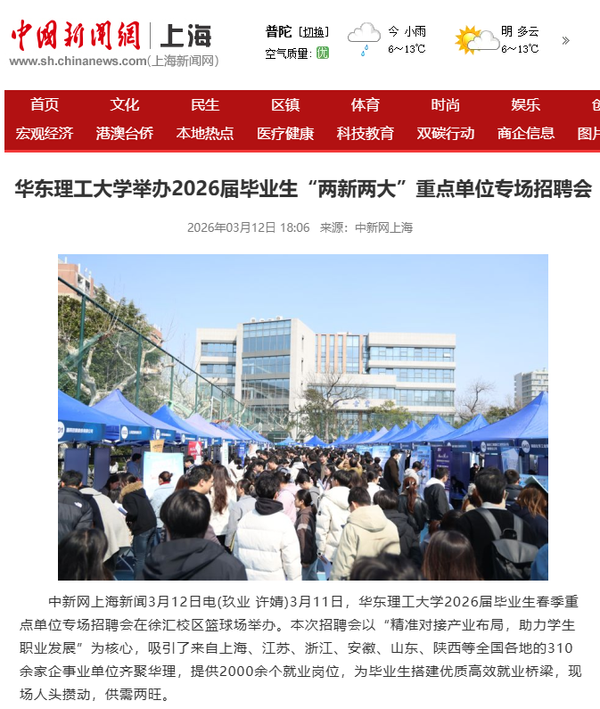 【中国新闻网】华东理工大学举办2026届毕业生“两新两大”重点单位专场招聘会