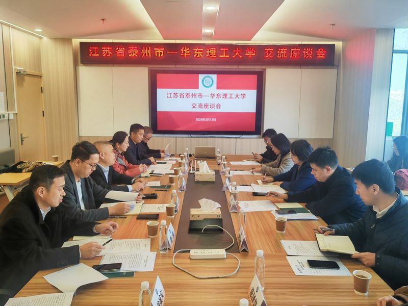 3月13日,江苏省泰州市与华东理工大学校地合作交流座谈会在华东理工大学实验十八楼418会议室举行。泰州市市场监督管理局副局长李萍带队到访,华东理工大学副校长李涛主持会议并致欢迎辞。双方聚焦资源共享与产业升级,就深化校地合作、人才引育及成果转化等议题展开了全面交流。