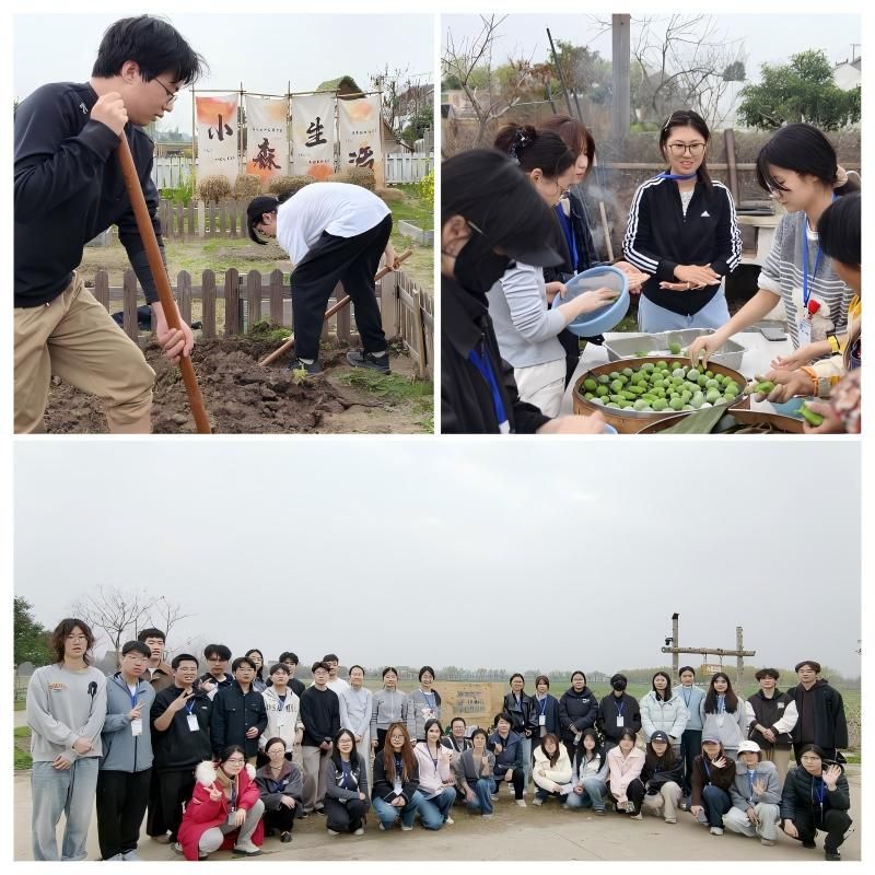 揭牌次日,首期“耕读问道—‘酶’好农事”劳动教育课程在此基地成功开启“第一课”,40名华理学子被分成多组,“土壤组”学习土壤检测、制作蚯蚓床、设计水肥一体化设施;“节气食育组”亲手制作窑烤披萨、清明果和环保酵素,并设计社区零废弃生机服务站方案;“作物栽培组”种下玫瑰与当季蔬菜,设计生物防控方案,负责全流程种植数据记录,并将搭建标准化种子图书馆。
