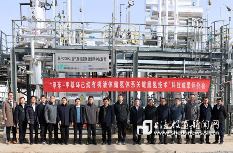 专家组实地考察了中试装置、审阅了技术资料,经质询讨论后一致认为:该成果建成了国内首套200kgH₂/d甲基环己烷脱氢中试装置,新型催化剂性能优异,装置运行稳定、关键指标优于设计值,为绿氢大规模安全储运提供了可行解决方案。评价委员会同意通过评价,认为该成果总体达到国际先进水平。