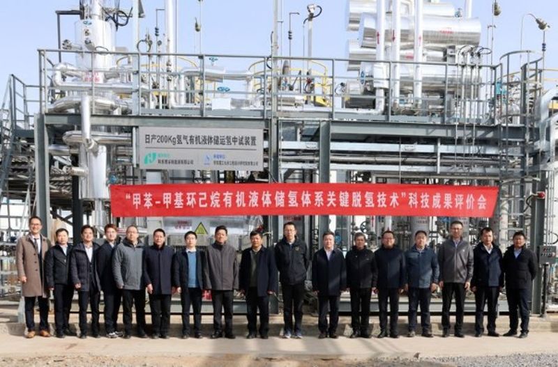 专家组实地考察了中试装置、审阅了技术资料,经质询讨论后一致认为:该成果建成了国内首套200kgH₂/d甲基环己烷脱氢中试装置,新型催化剂性能优异,装置运行稳定、关键指标优于设计值,为绿氢大规模安全储运提供了可行解决方案。评价委员会同意通过评价,认为该成果总体达到国际先进水平。