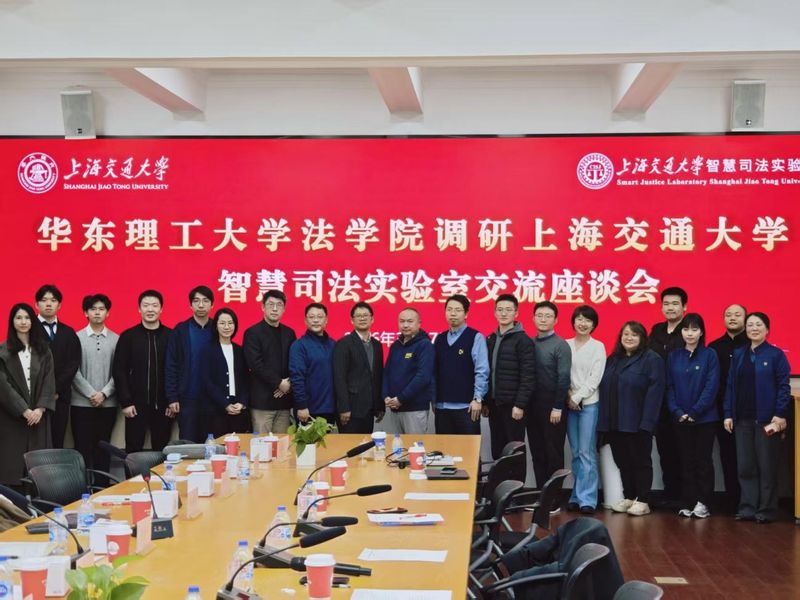 3月17日,法学院院长彭德雷一行赴上海交通大学教育部哲学社会科学实验室——智慧司法研究院,调研交流智慧司法建设与法学交叉领域研究。上海交通大学凯原法学院院长彭诚信、党委副书记张鹏、上海交通大学智慧司法研究院常务副院长杨力、国际法教研部主任胡加祥教授、华东理工大学法学院副院长周登谅,以及来自上海交通大学和华东理工大学的师生代表共20余人出席调研交流活动。双方围绕智慧司法实验室建设、数字法学、涉外法治以及人才培养等议题展开深入探讨。调研交流会由杨力主持。