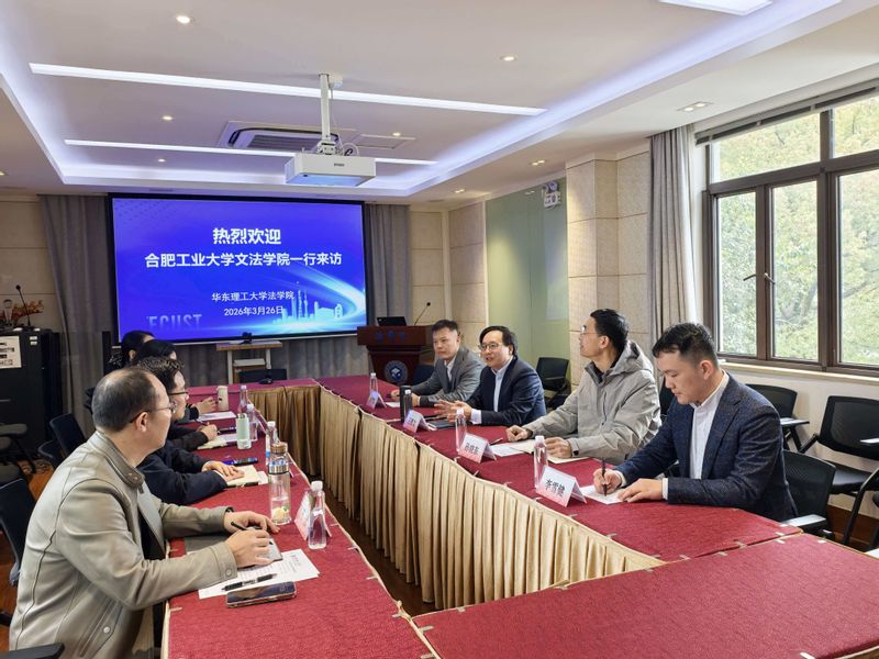 王惠文对合肥工业大学文法学院一行的到访表示热烈欢迎,并从历史沿革、师资队伍、学科建设等六个方面详细介绍了华东理工大学法学院的法学教育情况。他指出,两学院在办院特色、学科建设等方面存在诸多相似之处。期待本次交流能够凝聚共识、互学互鉴,为两院未来发展提供经验参考,为双方日后进一步交流与合作奠定良好基础。