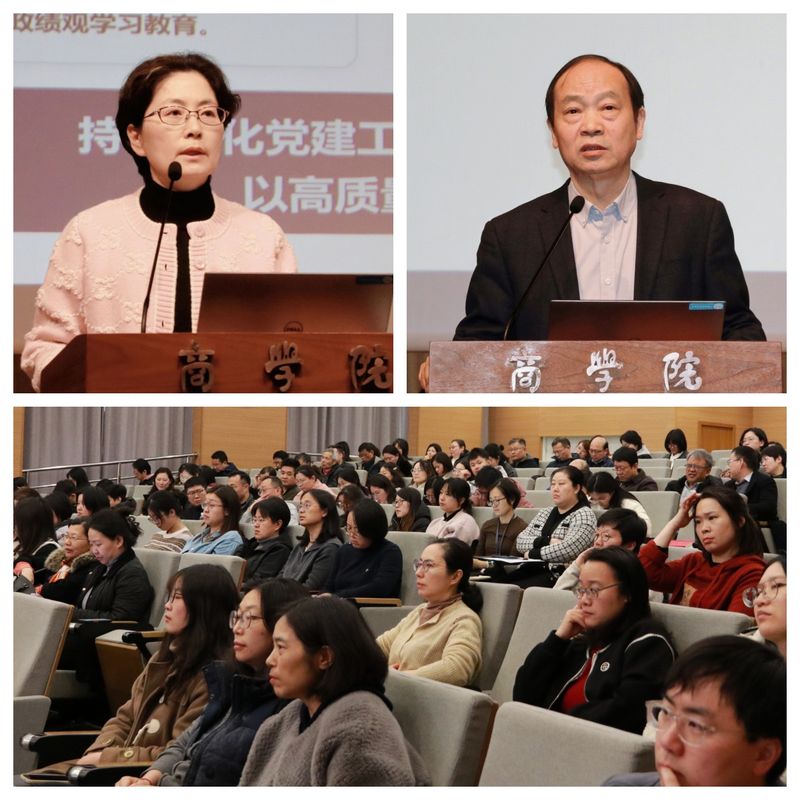 商学院党委书记侯丽敏回顾了上学期党建工作取得的扎实成效,并指出2026年是“十五五”开局之年,也是中国共产党成立105周年、教育强国建设纵深推进的关键时期。学院党委将以习近平新时代中国特色社会主义思想为指导,深入学习贯彻党的二十届四中全会精神,扎实开展树立和践行正确政绩观学习教育,切实把学习成果转化为推动“十五五”规划落实与学院高质量发展的务实举措。从严从实完成新一轮校内巡查,做到以查促改、以改促进,为学院营造风清气正的良好环境。